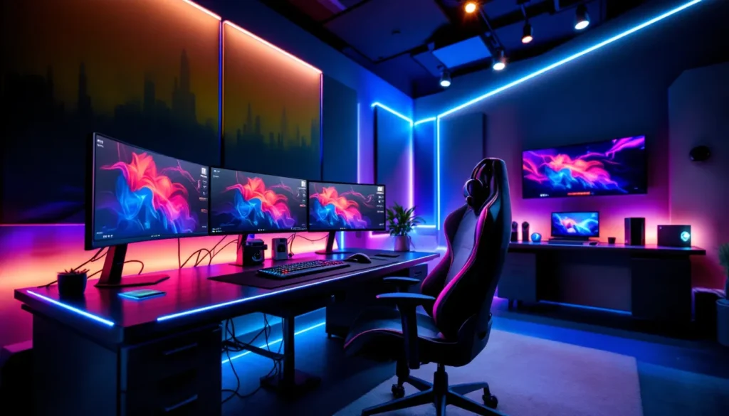 - Lighting Setup: RGB accent lighting (usually customizable), bias lighting behind monitors to reduce eye strain, and separate brightness controls for gaming vs. sleeping.